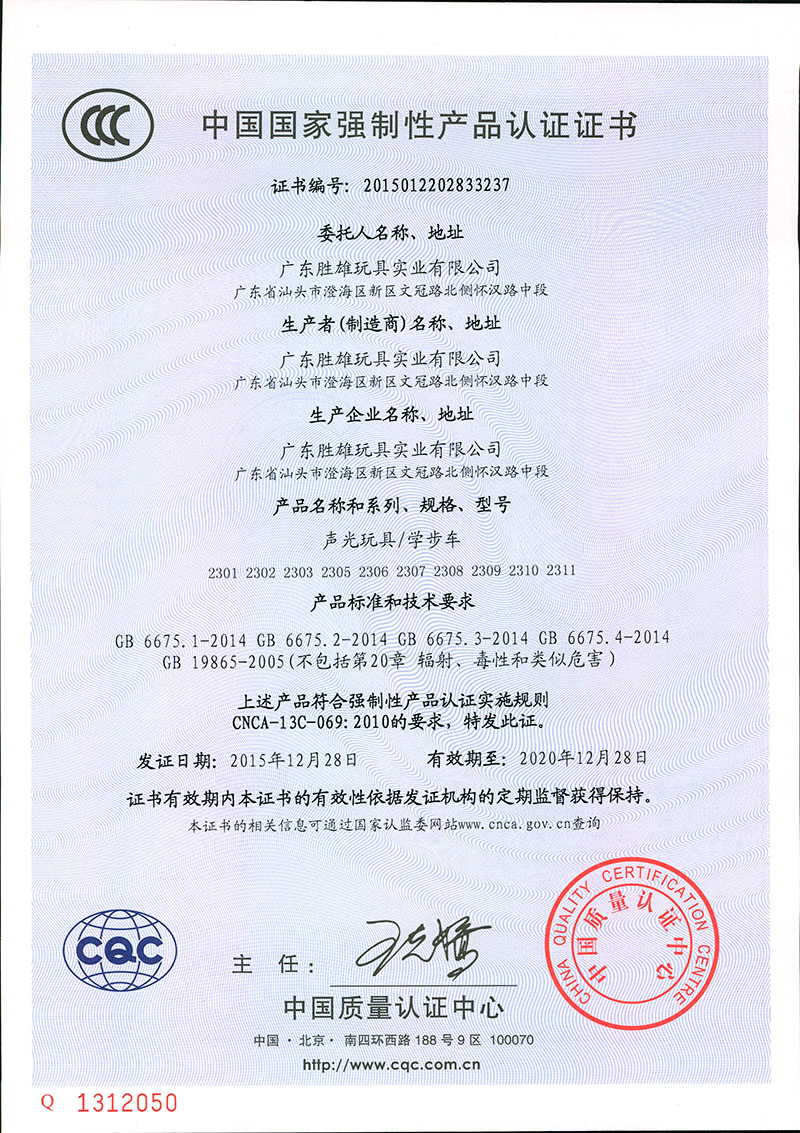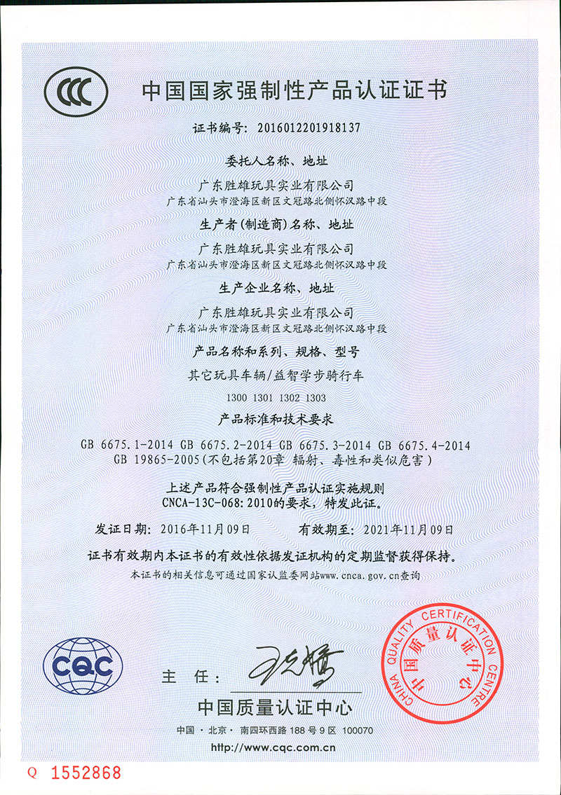 益智学步骑行车证书