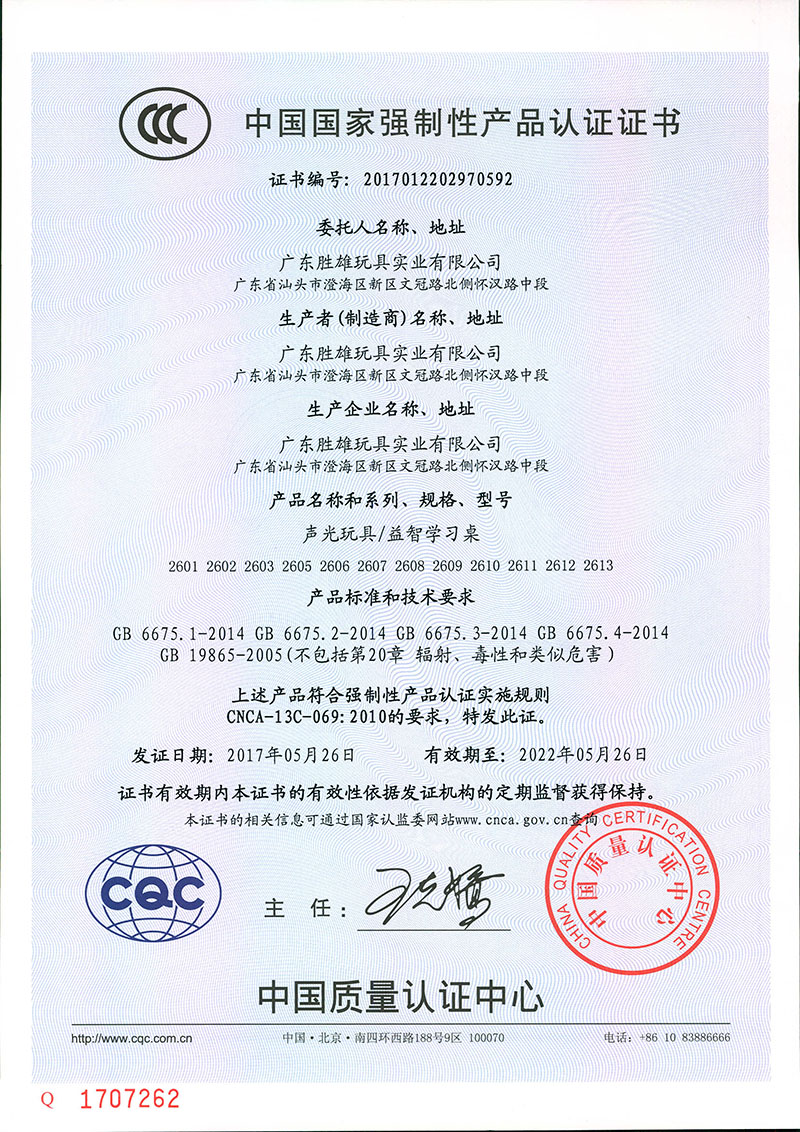 益智学习桌证书